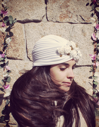Una de las novedades que introduce en la colección es este turbante para novia. Los turbantes están más de moda que nunca, y ya han llegado al peinado nupcial.