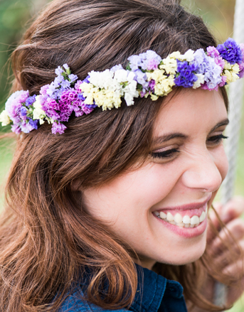 Me encanta esta corona de siemprevivas. Las novias con color están de moda!