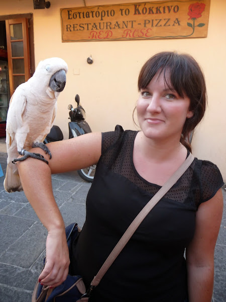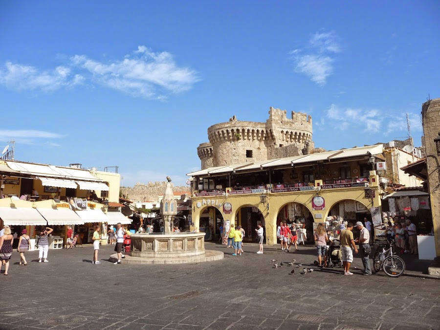 No dejéis de visitar el palacio del Gran Maestre, la calle de los caballeros, la mezquita Soleiman, la plaza Hipócrates y la calle Sócrates llenas de vida. Algo que me pareció muy curioso es que los bares y restaurantes utilizan para atraer al cliente a loros, papagayos y guacamayos que tienen en sus puertas y que si consumes te dejan hacerte fotos y estar con ellos jugando. Aquí tenéis una foto.