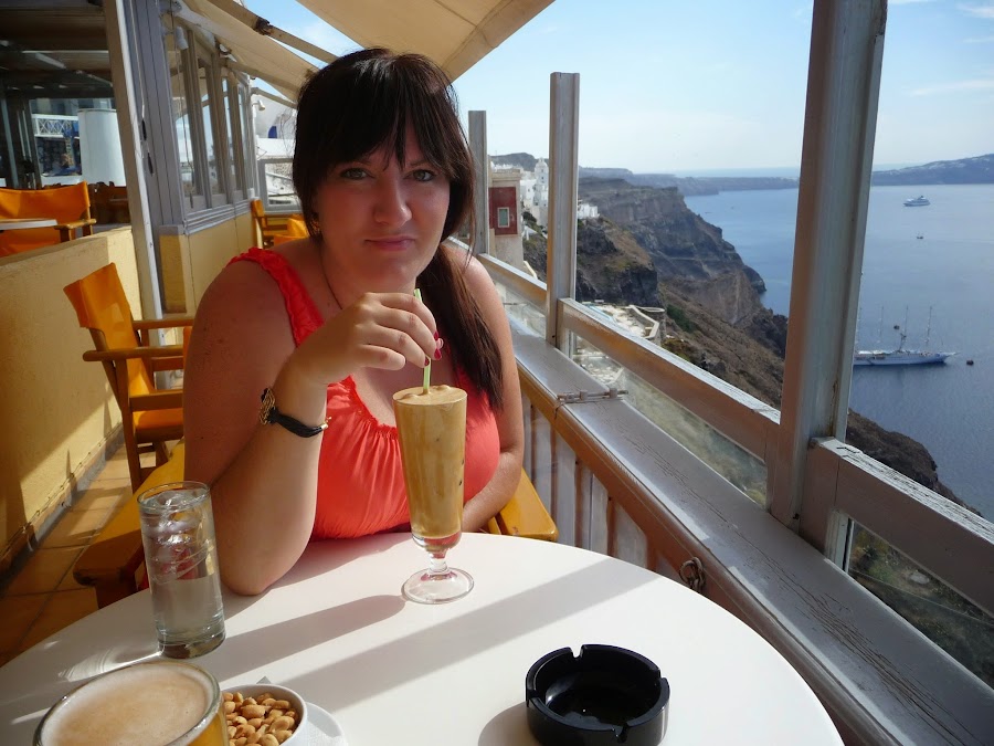 Es una isla que gusta y no deja indiferente a nadie. Mi primera impresión al verla fue mirar hacía arriba desde el puerto y pensar como antiguamente la gente subía y bajaba por esa pendiente de 300 m. Supongo que el burro-taxi ya se usaba en aquella época al igual que hoy pero yo prefería coger el moderno funicular que cómodamente te sube hasta Fira, la capital de la isla. Si tienes poco tiempo para conocer la isla te recomiendo ir solamente a dos lugares: Fira y Oia. Ambas son muy parecidas y lo que consigues visitando las dos es tener diferentes perspectivas de la isla y la Kaldera, además de callejear y conocer sus lugar escondidos, su arquitectura, comprar bisutería griega que para mi gusto hacen diseños únicos y muy bonitos, algún souvenir típico o simplemente, y muy recomendable, siéntate en cualquier café y disfruta sin mirar el reloj de las impresionantes vistas de altura y de un buen frapé griego. Allí el tiempo se detiene y es un placer para los sentidos. Para ir de Fira a Oia no es necesario contratar ninguna excursión ya que hay un bus de linea regular que conecta ambas ciudades en 30 min. Pasando por una carretera de curvas y altura pero que por muy poco precio te hará de bus-turístico mucho mejor que cualquier otro. Vale la pena por admirar el paisaje llano de la otra parte de la isla y como no por ahorrarse algo!