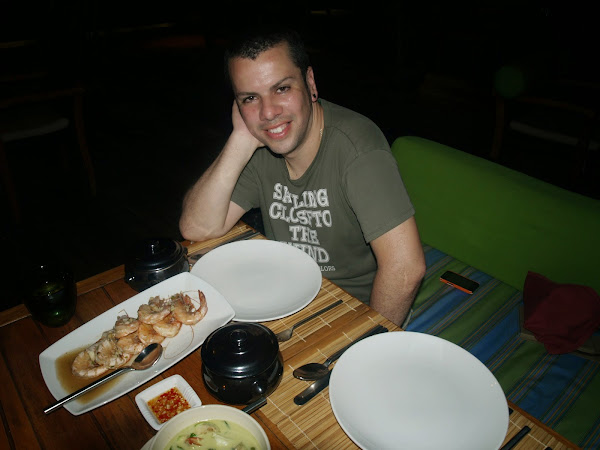 Nos duchamos y fuimos a dar un paseo por la orilla de la playa antes de disfrutar de nuestra primera cena a base de pescado y marisco cocinados al estilo, por supuesto, tailandés. Os recomiendo que probéis las gambas al curry verde. Pese al picante, están deliciosas.