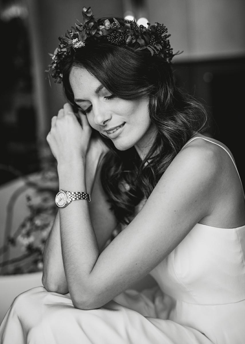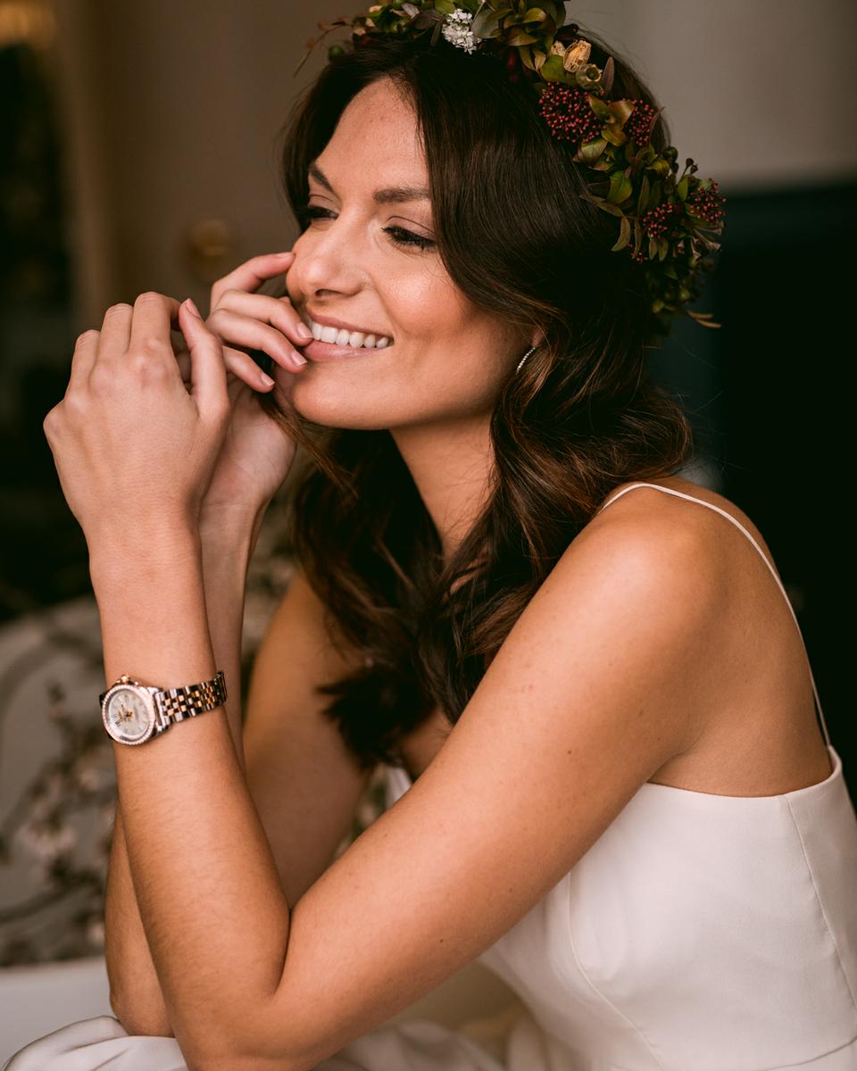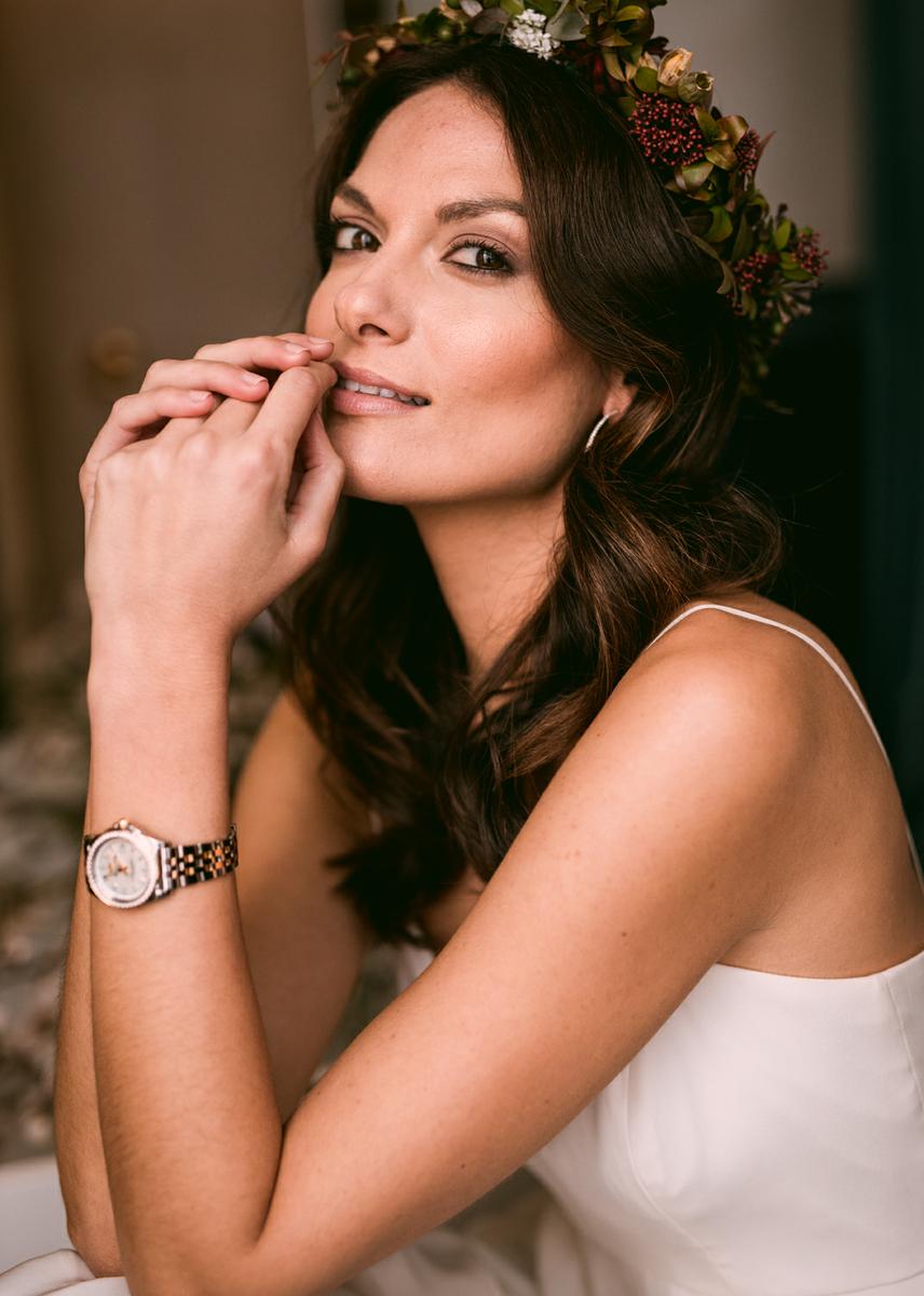 El peinado y maquillaje que los profesionales de Nacher Estilismes realizaron a Patricia fue muy acorde al estilo de novia que habíamos imaginado para el photoshoot: una novia actual y ligera, que brillara con luz propia. Por eso le marcaron el cabello con la herramienta Ghd curve, provocando un gesto de onda grande muy natural. Para la primera parte de la sesión lució una melena suelta y desenfada.