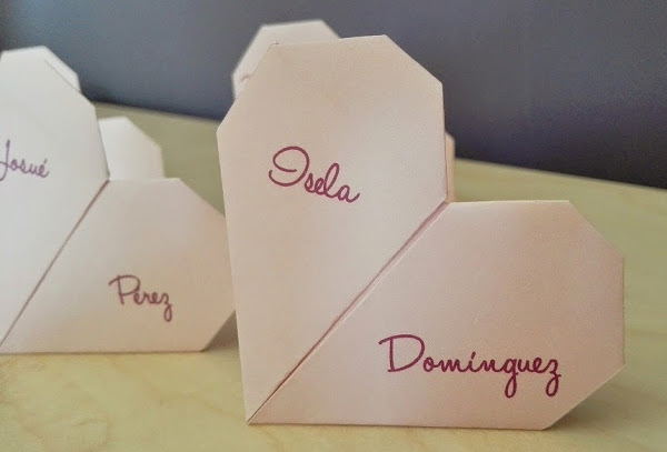 Y la verdad que me ha encantado el resultado!, así que estos Corazones de Origami, quedan oficialmente dentro de mi colección de ideas de Marcadores de Sitio para Boda.