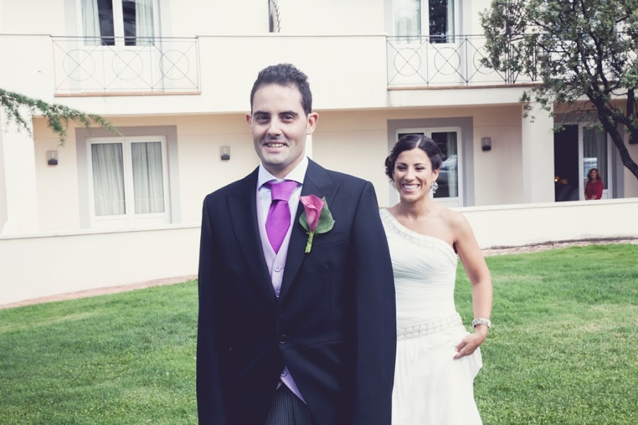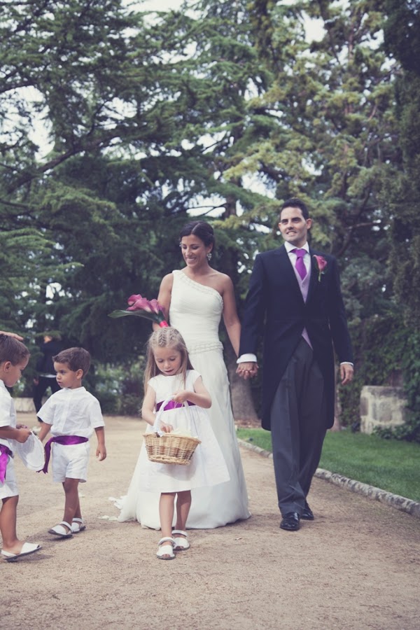 El novio llevaba chaqué de La Trajería y unos zapatos Guy Laroche. Los gemelos y la corbata eran morados de Gucci.