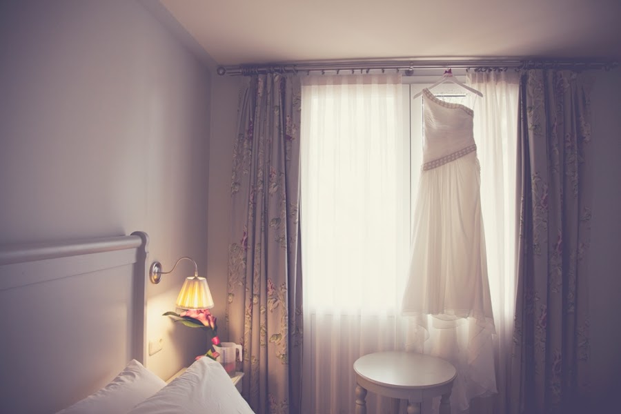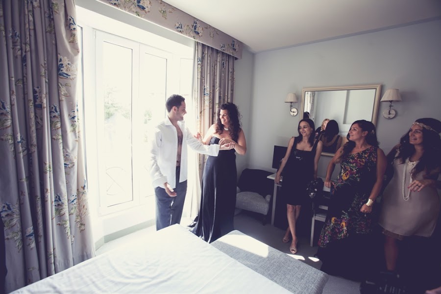 Se vistió en la suite nupcial del Hotel Torrelodones, acompañada de su madre, hermana y una de sus amigas. El novio también se vistió en otra habitación del mismo hotel y decidieron hacer un ?first look? en los jardines del mismo antes de salir hacia la ceremonia.