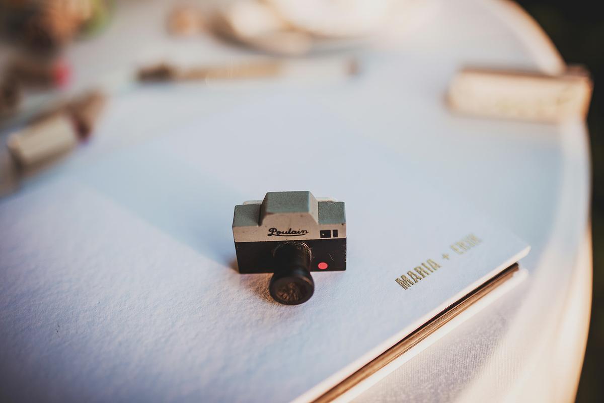 En el aperitivo se puso como libro de firmas un polaroid corner para que los invitados dejen su recuerdo de una manera divertida.