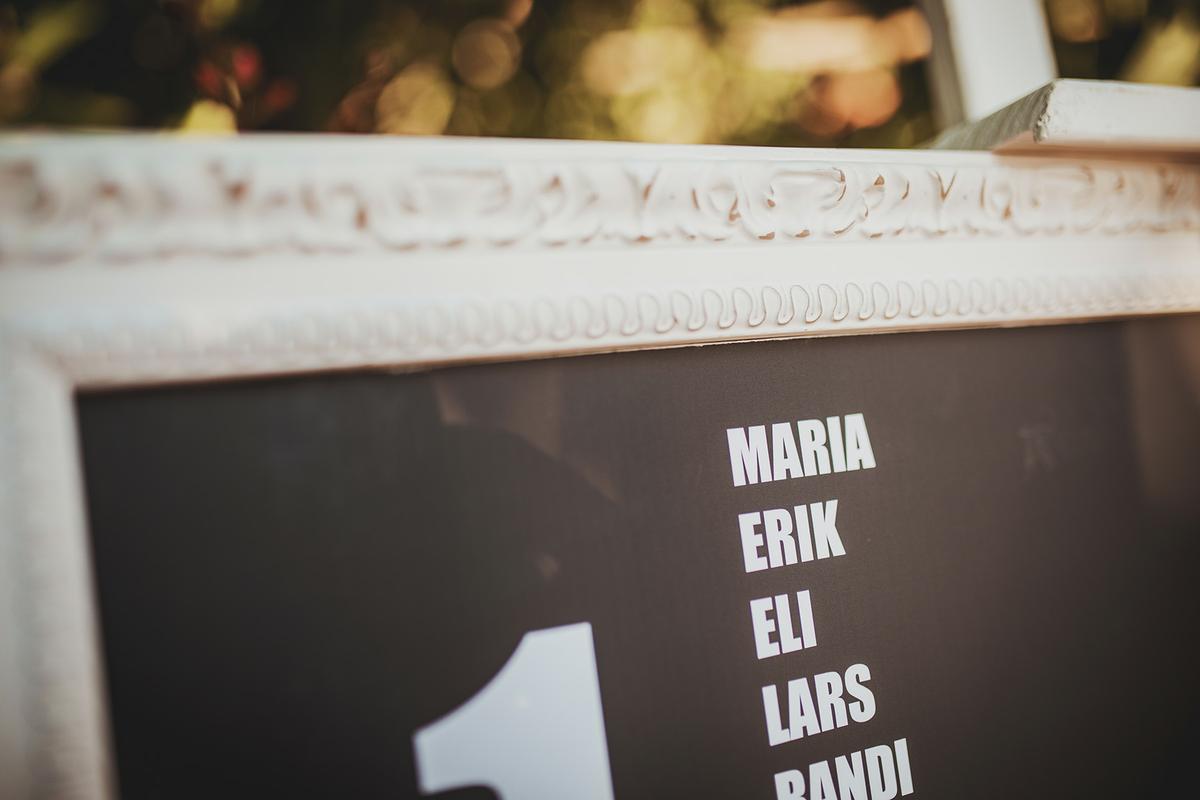 El seatting plan fue una pizarra negra con todos los nombres escritos en blanco.