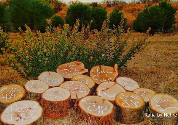 Nuestros tronquitos, base de nuestra imagen Rafia, nos parece un mesero ideal para bodas campestres y en la naturaleza