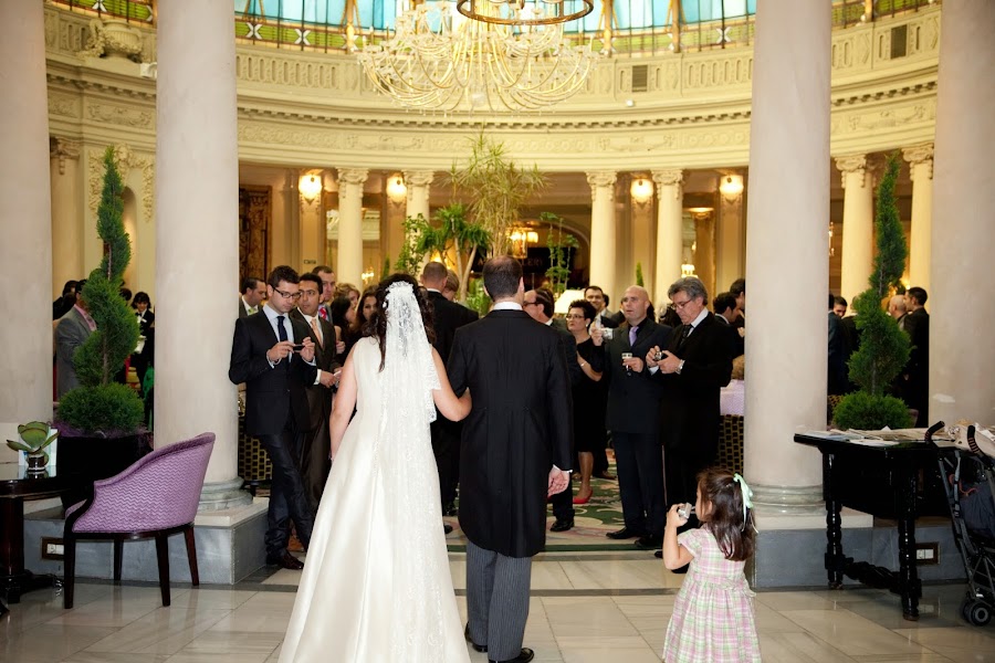 Cuando empezamos a organizar la celebración y empezamos a mirar sitios para el banquete en Madrid que estuvieran cerca de la Basílica de Atocha, preferiblemente un hotel puesto que nos casábamos en noviembre, de repente me encontré con el Hotel Palace en Bodaclick, que fue el portal con el que organicé mi boda. Pedí presupuesto, se pusieron en contacto conmigo y justo una semana después de que Fernando me regalara el anillo allí estábamos visitando el Palace. ¡No me lo podía creer! Pedimos más presupuestos, pero sólo concertamos visita con el Palace y antes de salir del hotel ya sabíamos que nuestra boda se celebraría allí. Fernando dijo que por él no miraba ninguno más y ¿qué podía decir yo? si ni en mis mejores sueños me lo habría creído. Así que en tan solo una semana y con tan solo una visita ya teníamos la Iglesia y el hotel. ¡Más rápido imposible!