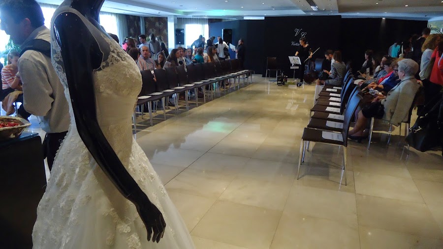 El domingo pasado se celebró la segunda edición madrileña, después de haber pasado también por Barcelona y Valencia. Y allí estaban otra vez Sonia y Cris, Cris y Sonia, recibiéndonos con una sonrisa y buenas palabras y a la vez atentas a todo: las ví estar pendiente de los expositores llevándoles agua, procurando que todo el mundo tuviera su sitio en el desfile, recibiendo a los visitantes... en fin, que debieron acabar agotadas pero felices porque fue todo un éxito. Asistieron 400 parejas de novios y los stands, todos muy bonitos, estuvieron abarrotados todo el tiempo.