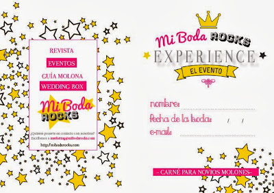 Ya podéis ver como será el CARNET DE NOVIOS MOLONES PERSONALIZADO que os dará acceso a los 30 sorteos que se realizarán en la reunión.Para poder sellar vuestro carnet completamente ,desde la dirección de MI BODA ROCKS, se recomienda que lleguéis prontito (sobre las 11:00 h ) para que os de tiempo a todo.