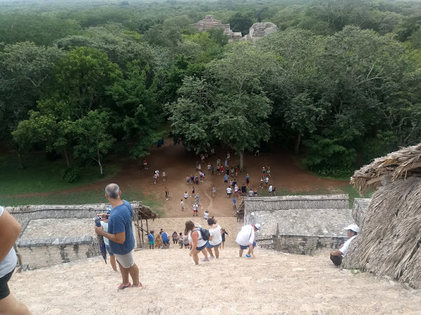Visitamos Cobá, que nos explicaron que tiene 120 escalones, y lo intente y lo conseguí. Son unas vistas impresionantes de vegetación. Una maravilla de ver.