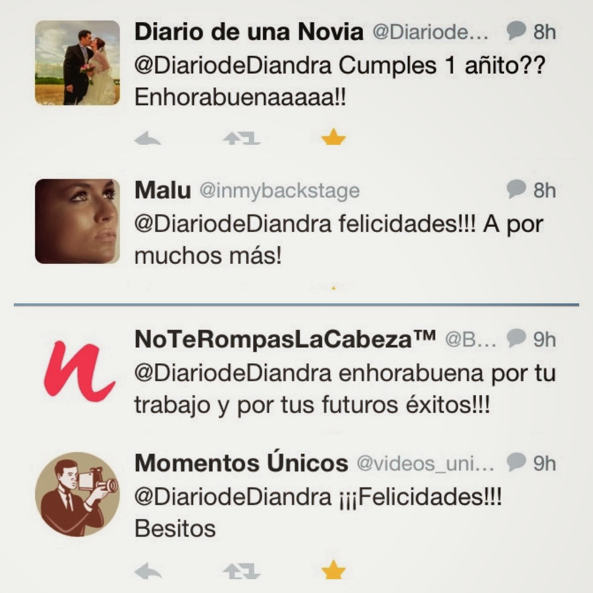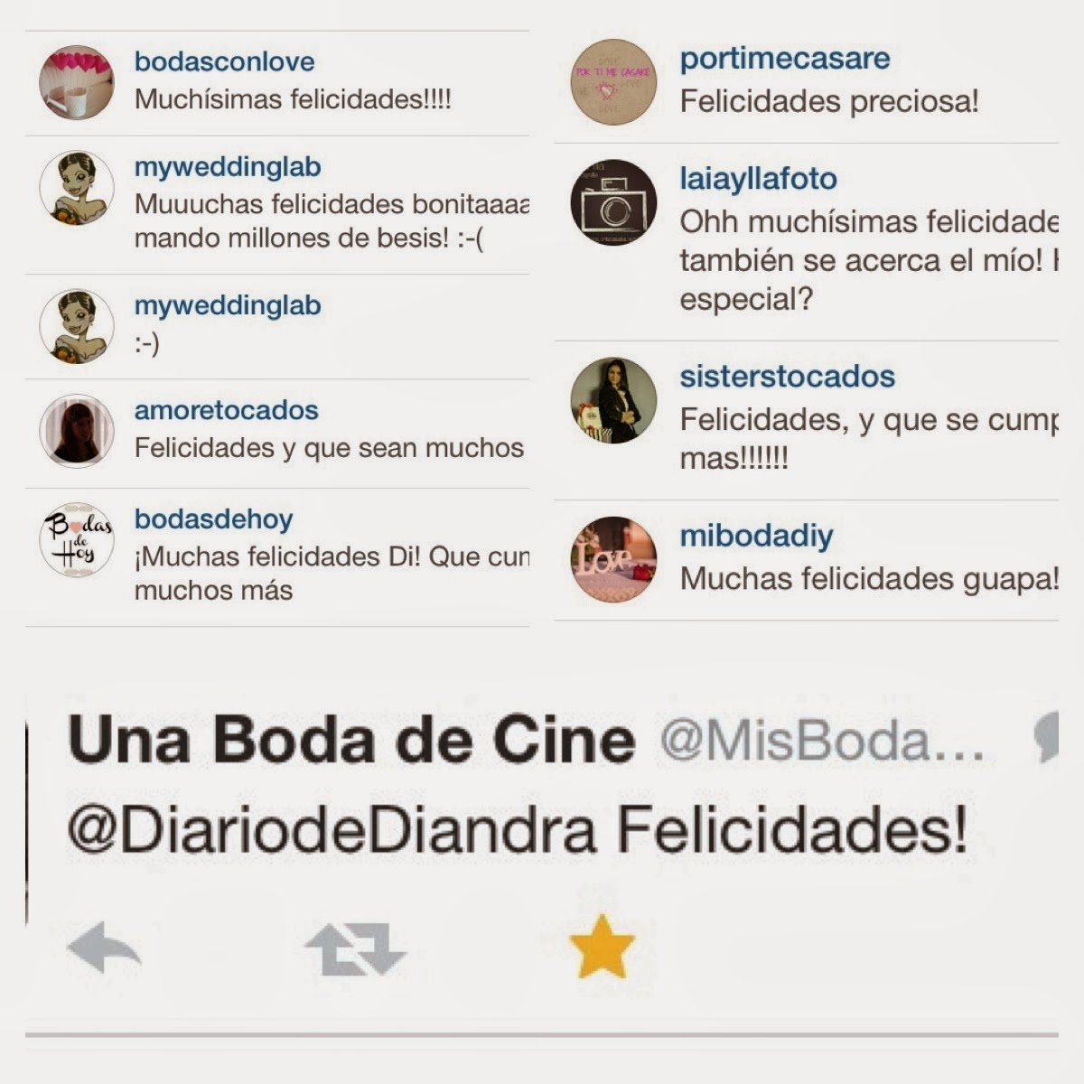 Nada más levantarme he subido esta foto a Instagram y la he compartido en twitter y Facebook y tooooodas estas han sido las felicitaciones.