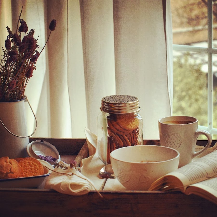 Hemos querido dedicar esta entrada a dos momentos del día que nos encantan. El primero es el momento del desayuno. La mayoría de los desayunos pasan por nuestras vidas "sin pena ni gloria" y, a veces, por el estrés de nuestra rutina habitual, se convierten en un hábito del cual poco disfrutamos. Por eso, las mañanas de los fines de semana se convierten en las perfectas aliadas para disfrutar de desayunos llenos de encanto como este que os proponemos a continuación, donde, con un aire algo romántico, podemos disfrutar de una fría mañana de otoño junto a una buena taza de café, un rico tazón de cereales, el toque dulce de las violetas y perdernos por unos instantes en las páginas de un buen libro.