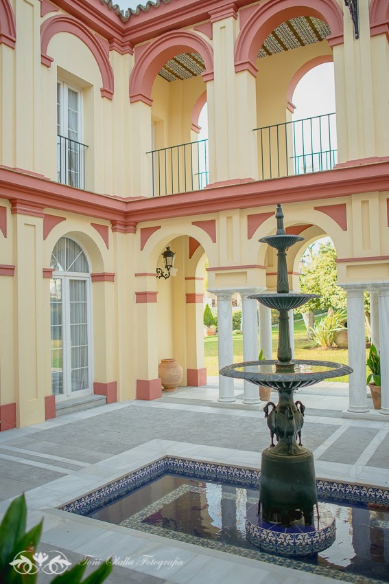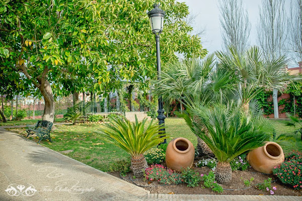 La finca está situada en Sanlúcar La Mayor en Sevilla y es tan versátil que acoge todo tipo de celebraciones aunque, sin duda, es ideal si estáis pensando en celebrar vuestra boda tanto en el exterior como en el interior pues dispone de rincones tan bonitos y singulares que al instante te imaginas allí celebrando tu día B. Personalmente, algunos de los que me enamoraron nada más llegar fueron su muralla, iglesia, plaza, torre, fuentes y jardines. ¡Qué bonitos!