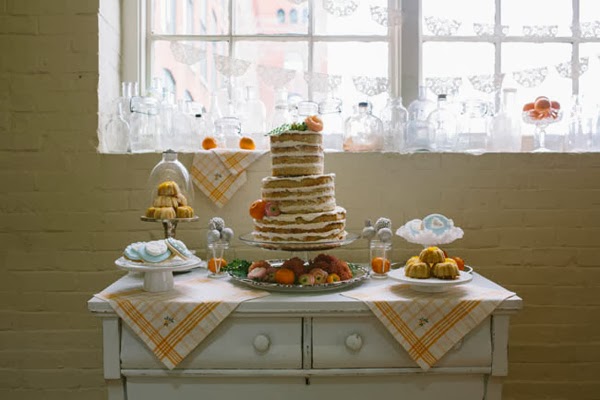 Las clementinas no sólo están en los arreglos de mesa, sino también en toda la ambientación, adornando el pastel o la mesa de dulces.