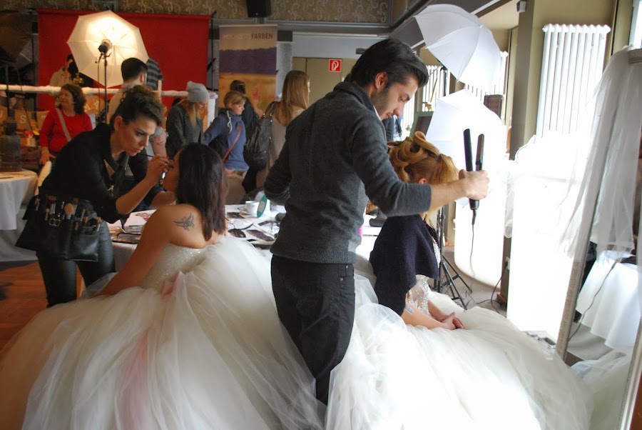 Este estilista de nacionalidad turca, se encargó de peinar y maquillar a las modelos. Para mi gusto, el maquillaje resultó muy marcado y los recogidos poco o nada naturales, algo que a los españoles nos espanta pero que aquí es bastante popular, sobretodo entre la comunidad turca y Nürnberg es la segunda ciudad alemana después de Berlín con más población turca.