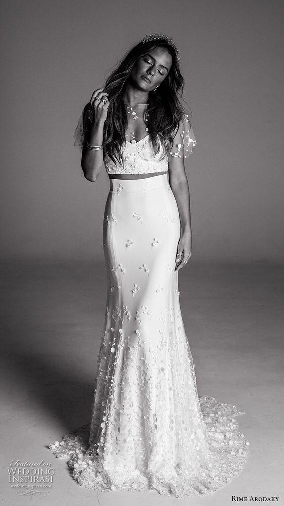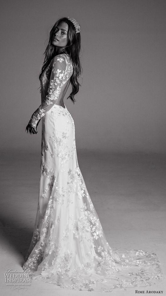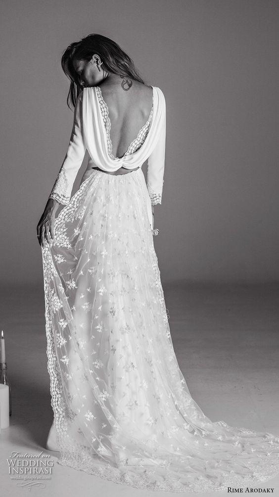 Nos parecen diseños muy sexys, modernos y que incluyen todos aquellos elementos que nos encantan: la diferencia con respecto a los modelos más clásicos que estamos acostumbradas a ver; la superposición de tejidos y texturas con tules y bordados; los preciosos escotes que realzan tu pecho y, en otras ocasiones, tu espalda, y ese halo de romanticismo que, como veis en las fotografías, convierten a una novia en toda una princesa de cuento de hadas. La colección de vestidos de novia de este año nos tiene enamoradas, pero hemos tenido oportunidad también de ver modelos de otras temporadas y podemos deciros que triunfan temporada tras temporada, pues Rime Arodaky se mantiene fiel a su estilo.