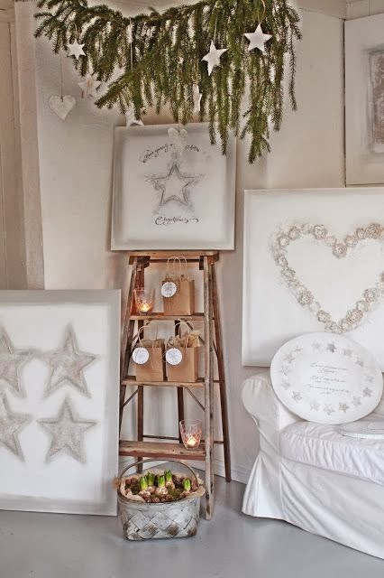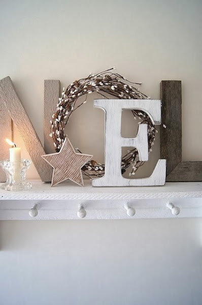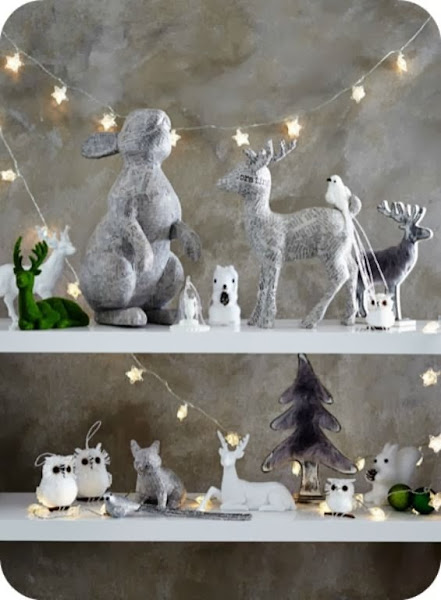 La segunda parte la he dejado para diferentes tipos de decoración, con ramas, figuritas monas forradas de papel maché, luces blancas, odio las lucecitas de colorines, letras de cartón o madera, este tipo de decoración rollo nórdica toda en blanco o gris me rechifla.