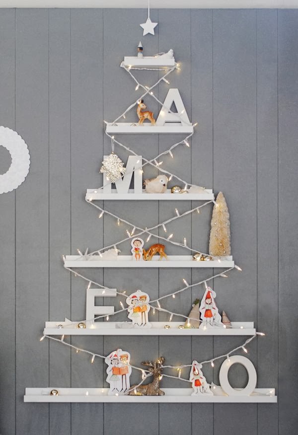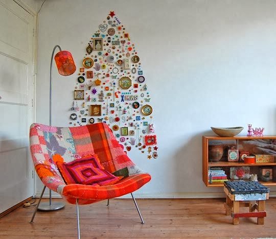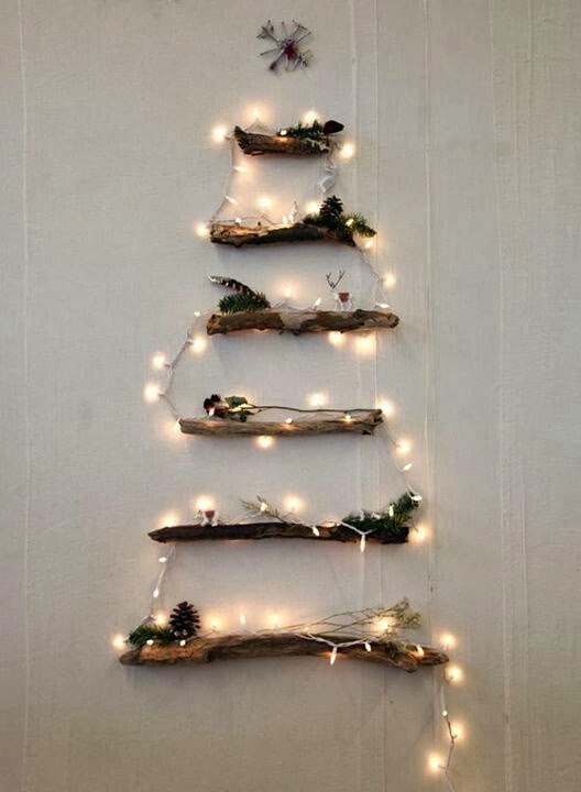La primera selección que he hecho es de abetos alternativos, pintados sobre la pared o un palet de madera, hechos con washi tape, troncos, fotos..... Como veis baratitos y fáciles de hacer y no ocupan mucho espacio.