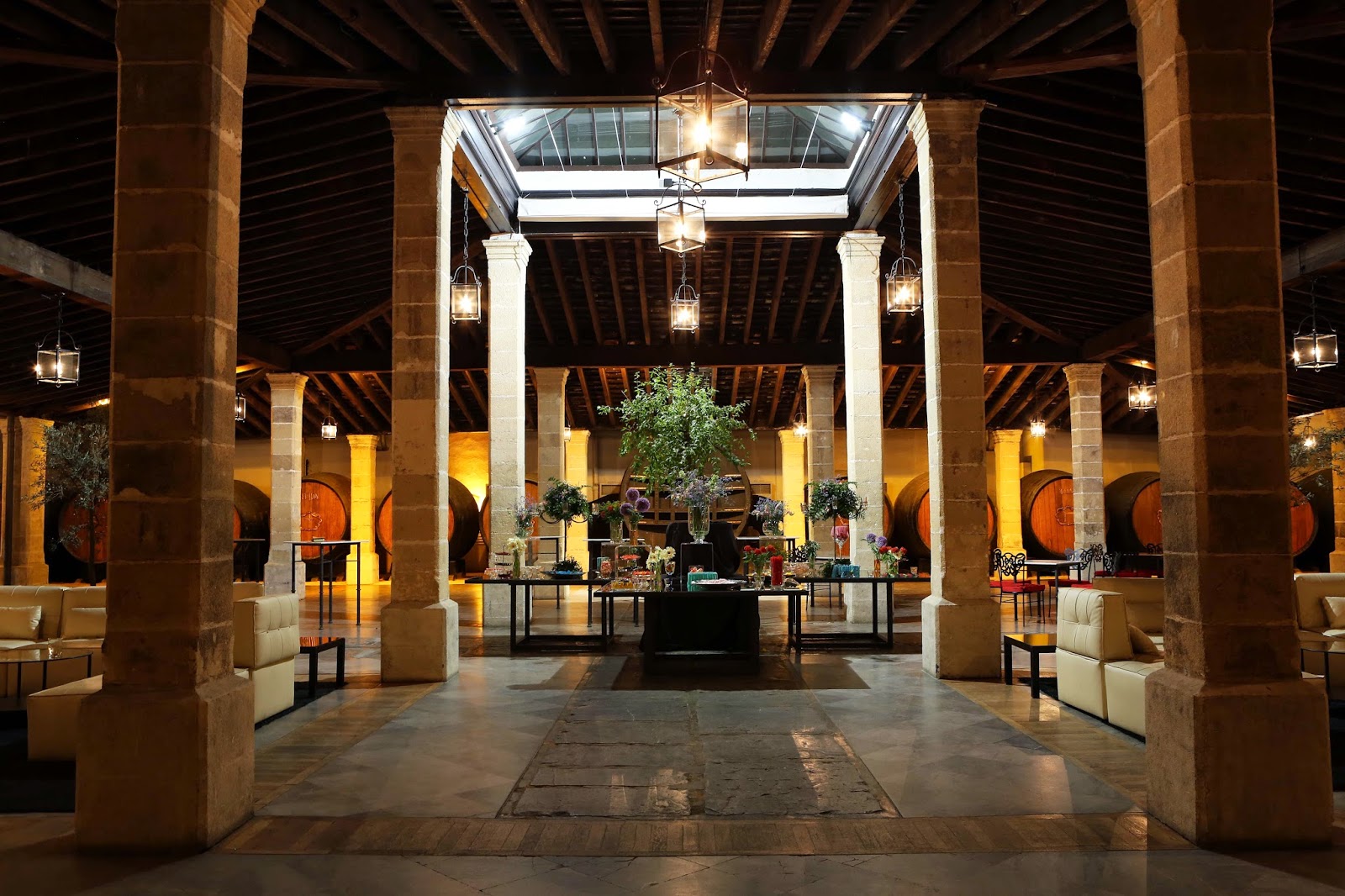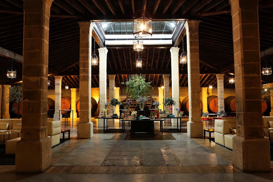 Y la celebración fue en la Bodega de Gonzalez Byass, muy famosa por la belleza de sus instalaciones y sus buenos vinos de Jerez. Os podría contar mil cosas de ese día que recordaré para siempre, pero hubo tres cosas con las que aún las pienso y sigo emocionada: tener la oportunidad de bailar unas sevillanas con un caballo, la pulpeira que trajimos desde Galicia para el aperitivo y la decoración del jardín para la cena.