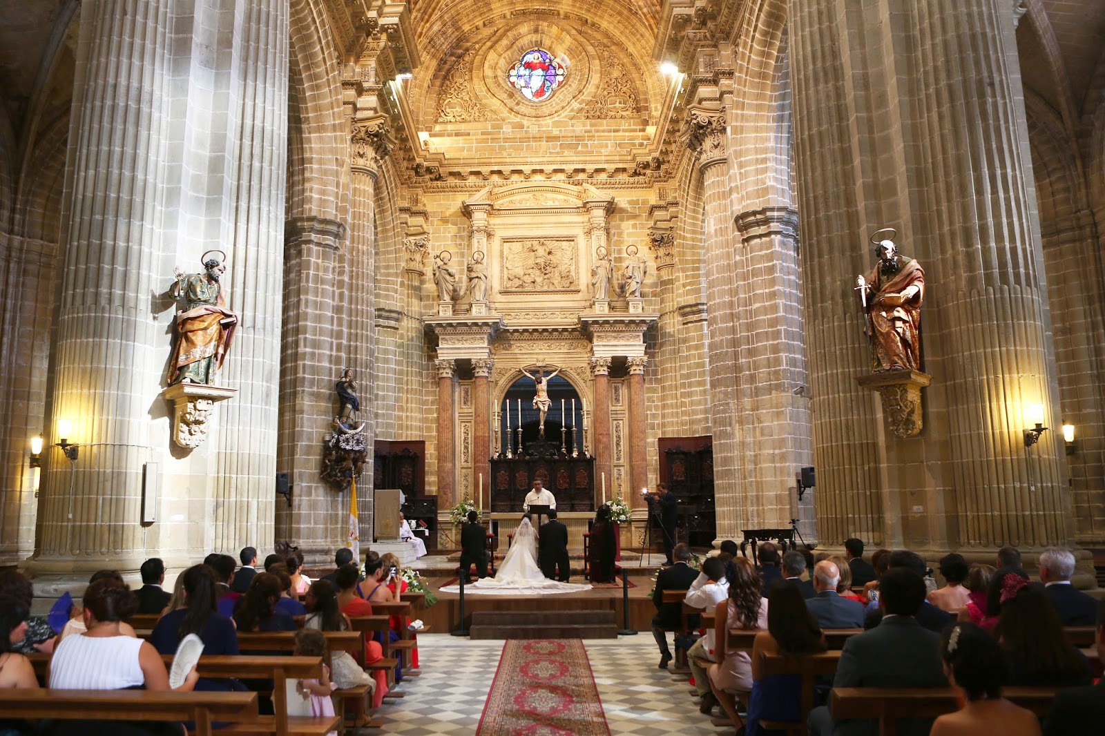 El día de la boda la verdad que no me puse nada nerviosa, tenía muchas ganas de vivir ese día, porque me había pasado preparándolo todo un año. Nos casamos en la Catedral de Jerez de la frontera, que sinceramente no os lo recomiendo en absoluto, porque el cura es un poco maleducado. Nada más llegar al altar, ese momento tan bonito, me echó una bronca Don Manuel (párroco también de la iglesia de San Dionisio también), que no me eché a llorar en ese momento del disgusto de milagro.
