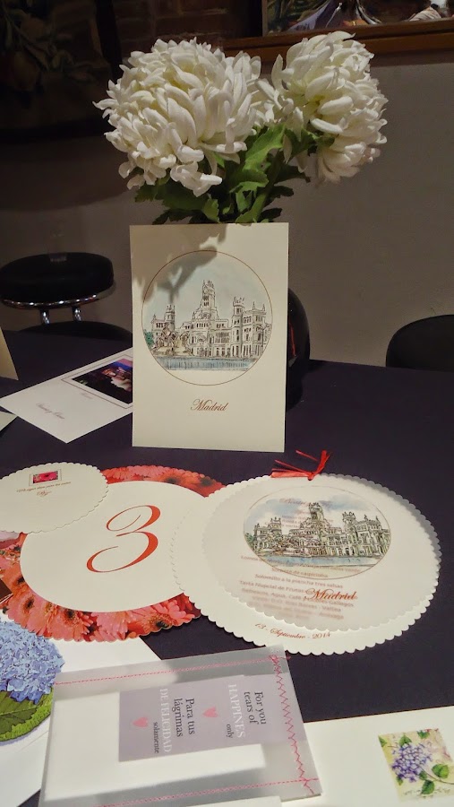 El siguiente stand que me llamó la atención fue el de Eledis Diseño, para la papelería de tu boda. Me encantaron unas acuarelas como meseros (ya sabéis que son mi debilidad) que hacían a juego con las invitaciones y las minutas e incluso el libro de firmas.