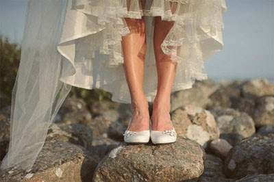 Vestir con zapato con tacón alto, estiliza bastante la silueta, pero es el día de nuestra boda y debemos de llegar a un acuerdo con nuestros pies: