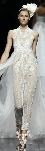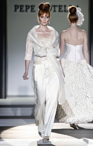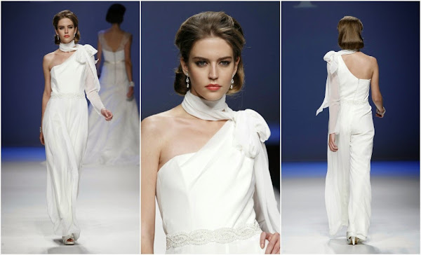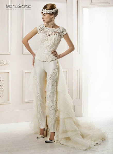 Manu García incluye en su colección de novias de 2014 dos modelos con pantalones muy distintos entre sí:
