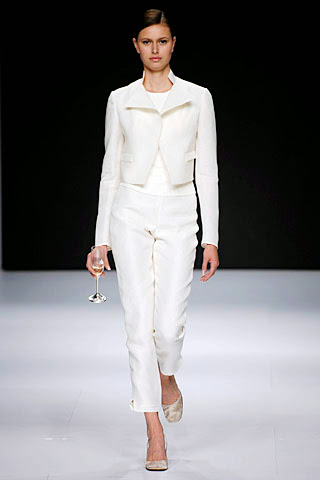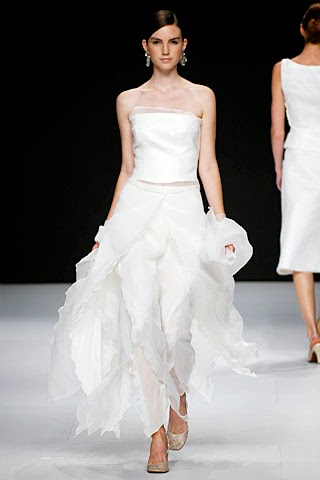 Rosa Clará también decidió lucir pantalones en uno de sus modelos, pero de una forma más sencilla y futurista a la vez.