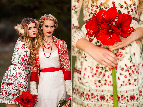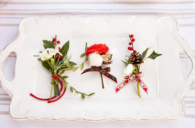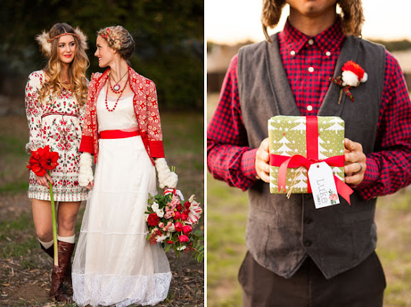 Empecemos por el look de los novios, es fundamental combinar los rojos con verdes y blancos, algunos escoceses y también dorados. En tocados, ramos, zapatos, boutonniere del novio y cualquier accesorio que te guste!
