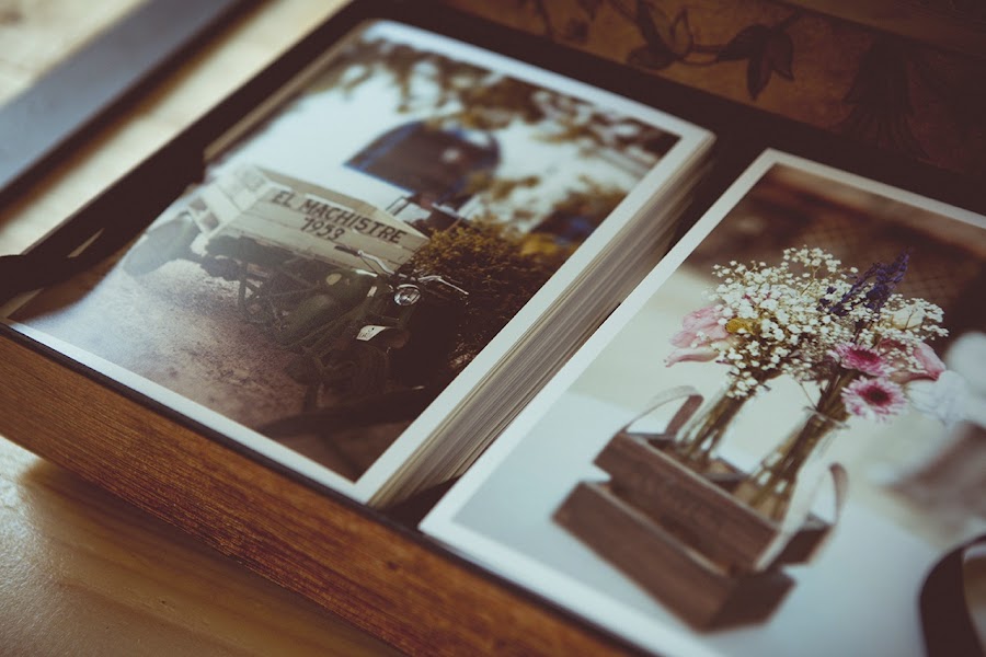A mi me dio un vuelco el corazón, la sensación que me vino fue de amor, mucho amor, el que para mi representan esos momentos y el que Tania puso para realizarla. No aguanté mucho sin sacar las fotos y empezar a verlas y volvió a mi otro de los recuerdos que hacia años que no tenía. ¡La sensación de tocar una foto es maravillosa! La era digital mola, pero se ha cargado esos momentos de tocar las fotos y pasárnoslas unos a otros para ir viéndolas. Y ahí es cuando yo lloro, mucho, mientras veía las fotos de nuestra boda mi cabeza me llevó a cuando era una niña, abría una caja metálica de galletas que tenía mi abuela, me sentaba en el suelo y disfrutaba viendo sus fotos mezcladas, las de su boda, de mi madre y mis tías cuando eran pequeñas, de las bodas de ellas... Yo siempre le decía que yo también tendría una caja como ella para que mis nietos pudiesen hacer lo mismo. Con los años ya me había olvidado de todo eso y al abrirla volvieron a mi esos dulces recuerdos, he cumplido un sueño, tener mi caja de fotos para que mis nietos hagan como yo, tocarlas y desordenarlas tantas veces como quieran sin miedo a que les pase nada, porque estarán para eso.