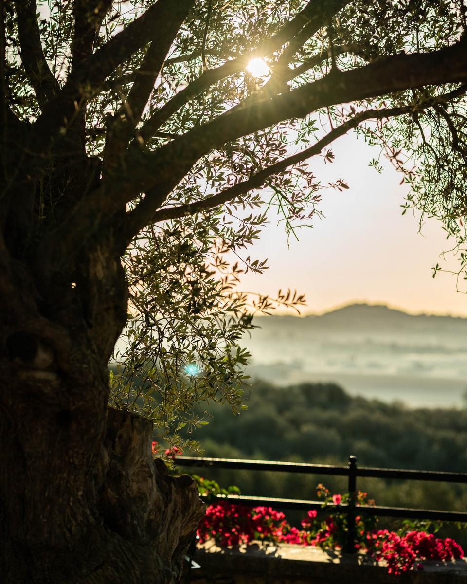 El proyecto de regeneración de los diez mil olivos repartidos en cien hectárea de terreno se contempla de forma holística. Aquí se cultivan los árboles de sus predecesores utilizando técnicas similares, de modo que su aceite procede de los mismos árboles de la época del archiduque, sin utilizar pesticidas ni productos químicos.