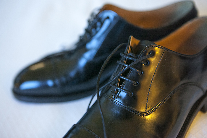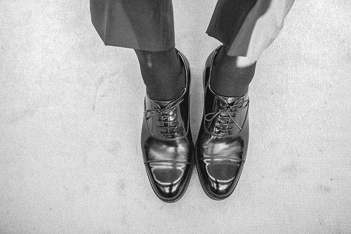 Los zapatos elejidos fueron de Bow-Tie,negros de corte clásico al estilo inglés.