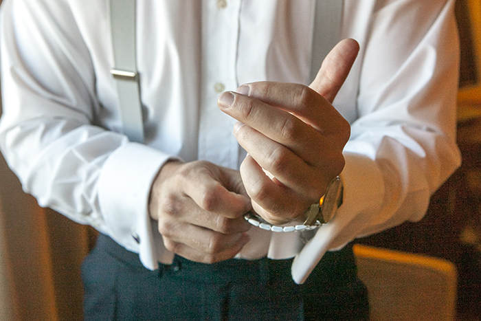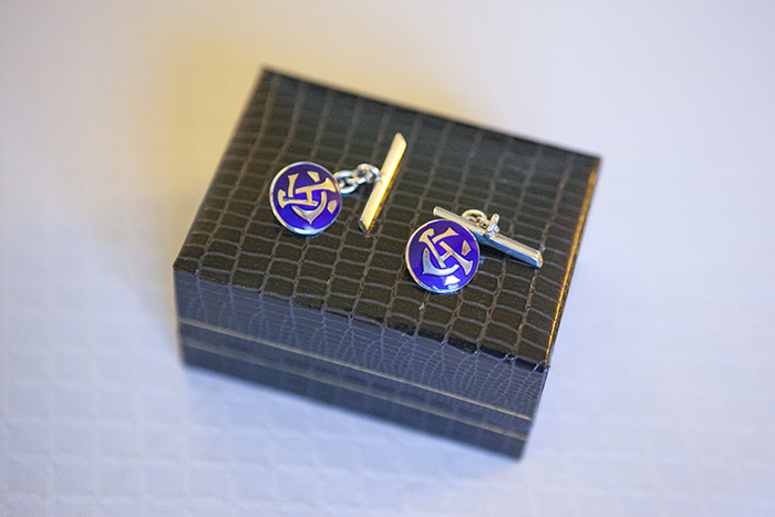 The cufflinks were a gift from my parents the day of our official engament, with his initials engraved.
