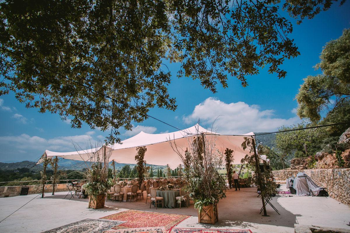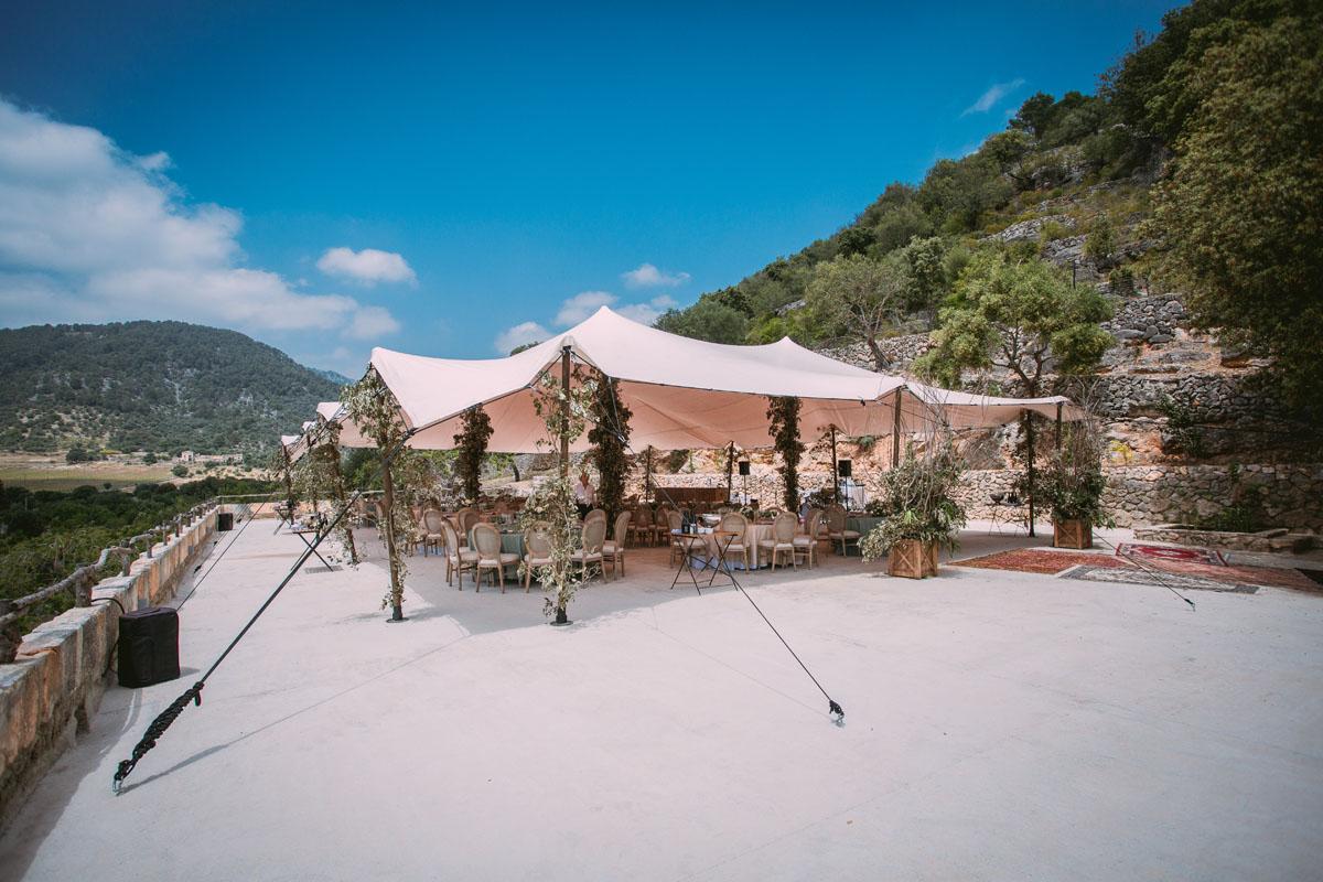 El banquete, por su parte, se celebró en una terraza abierta al aire libre con unas inmejorables vista a la Serra de Tramuntana. Un precioso día de primavera ¡nos acompaño durante toda la boda!
