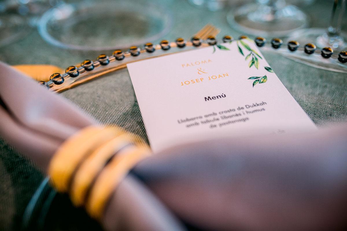 Tanto del menú de la boda como de la repostería se encargó el servicio de catering Marc Fosh y fue como siempre ¡todo un acierto! Aunque toda la familia se implicó en el diseño de todos los detalles, la gráfica la diseñó Moments. Nuestra compañera de equipo Nuria Ontiveros se encargó de diseñar desde las invitaciones hasta toda la papelería de la boda.