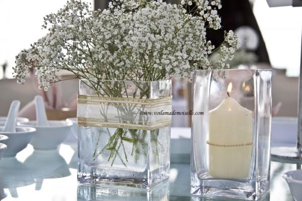 No solo podemos hacer pequeñas decoraciones de sillas en la ceremonia o mesas sino que podemos crear centros preciosos, calidos y sencillos