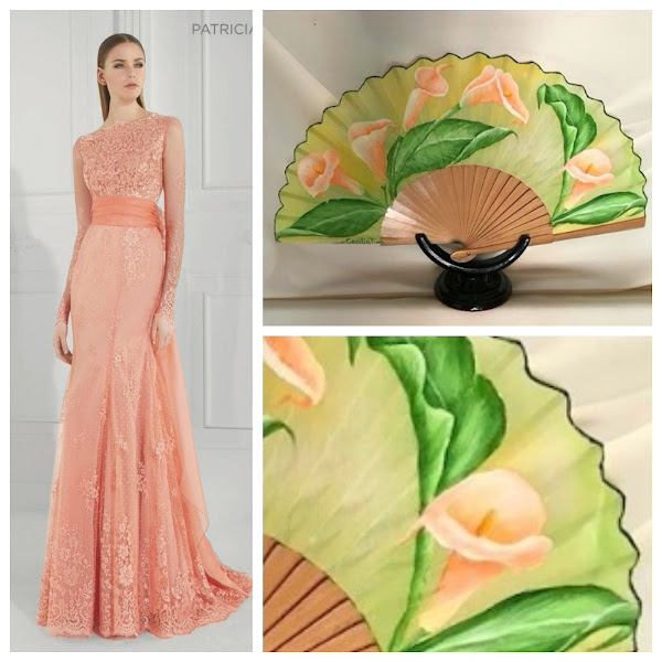 Empiezo con un abanico con Calas en tono Coral entonado con el modelazo coral de esta diseñadora que me ha enamorado