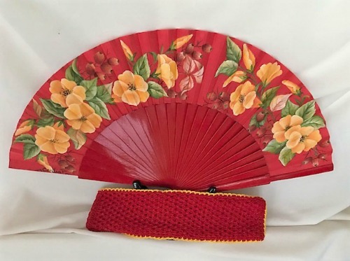y ahora el abanico con su funda hecha a mano a juego con el abanico (cada abanico va siempre con su funda o caja a gusto de la clienta )
