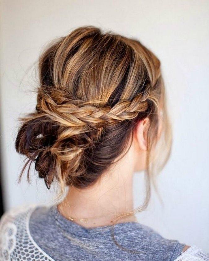 También puedes optar por un rodete en la zona de la nuca, a modo de moño bajo, formado a base de trenzas finas, combinado con trenzas pegadas, una en cada sien, o solo en una.