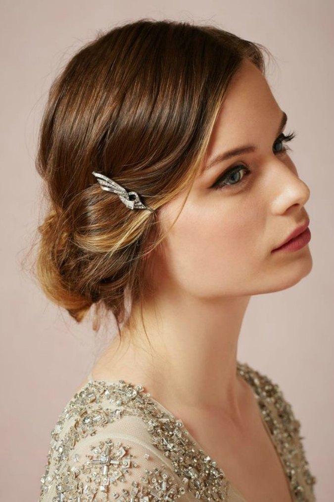 Puede ser estilo diadema, o un prendedor estilo vintage. El caso es que tu peinado lleve un adorno bien bonito que combine con tu vestido y tenga luz propia.