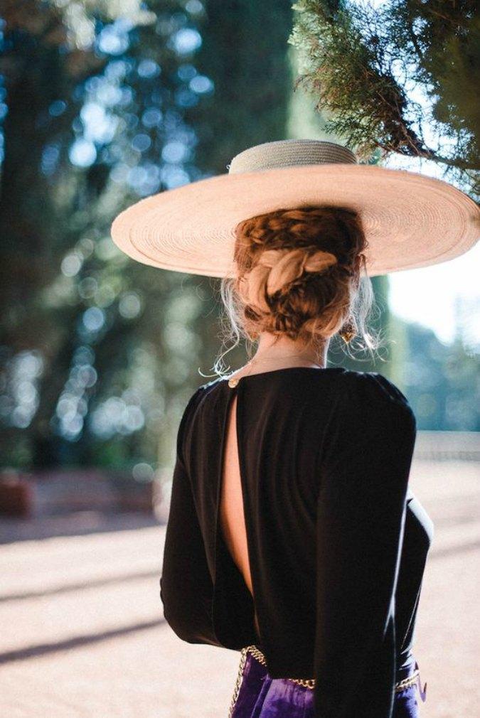 La pamela es un sombrero cuya característica principal es que el cuerpo es bajo y las alas anchas y crea a nuestro alrededor un espacio. Sin ninguna duda en este apartado hemos de recomendarte un recogido bajo, puede ser un moño redondo a la nuca, una coleta baja o una trenza más o menos suelta.