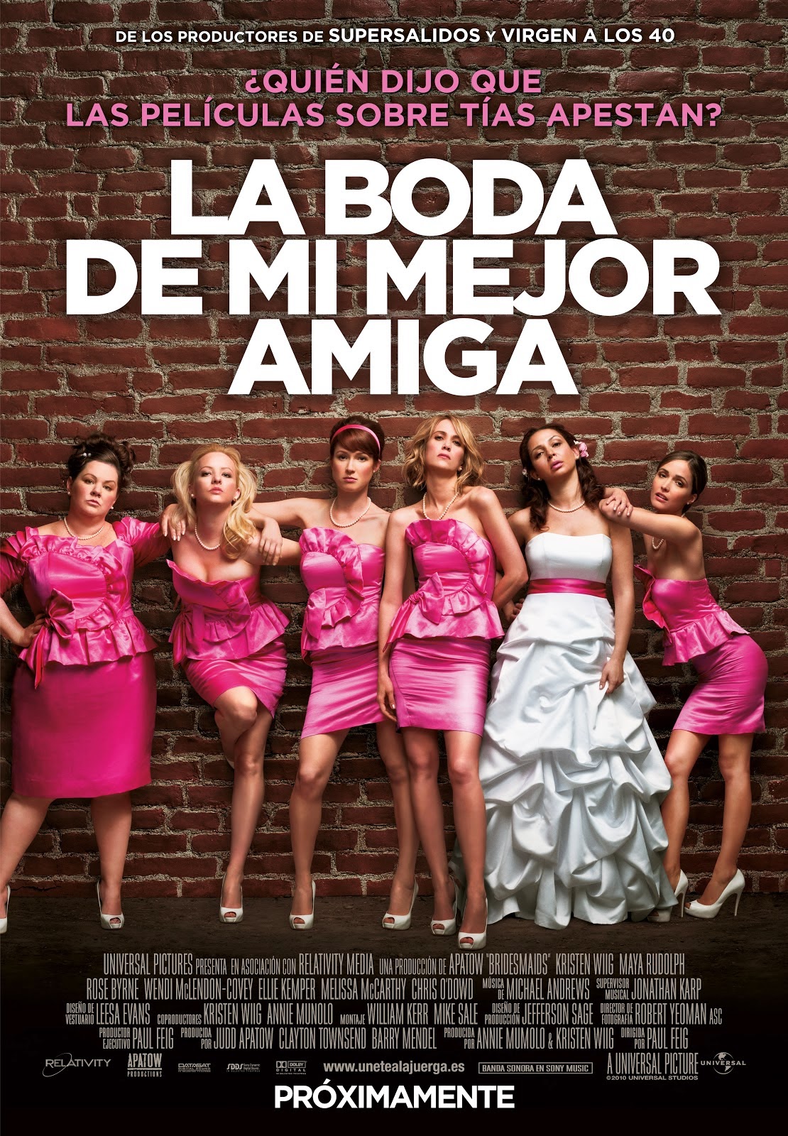 La boda de mi mejor amiga: Podéis imaginaros los entresijos que llevarán a cabo dos amigas de la novia por conseguir su favoritismo. Lillian, la novia nombra a estas dos amigas junto a tres más sus damas de honor y estas están mas preocupadas en la amistad con la novia que en que los preparativos salgan bien.