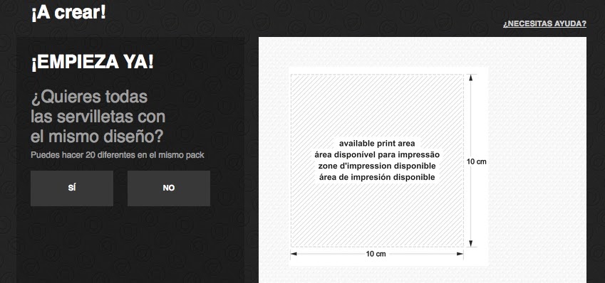 Diseñar vuestras propias servilletas es muy fácil. Sólo tendréis que cargar la imagen que hayáis elegido y seleccionar si las queréis todas iguales o diferentes.
