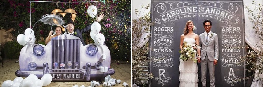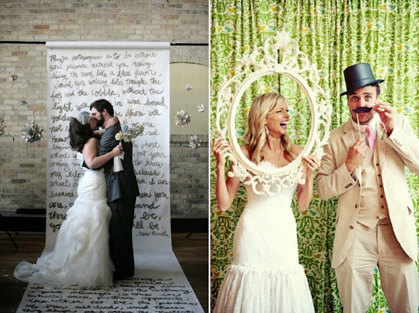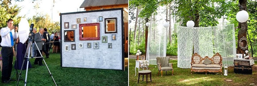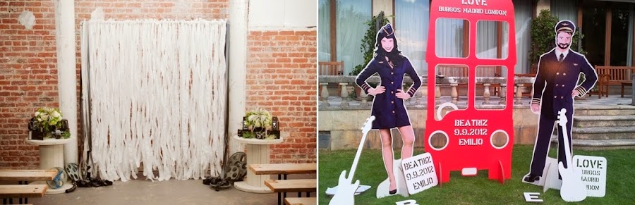 Hola!! ¿Qué tal? Algo cada vez más común es las bodas son los conocidos photobooth o photocall. Mientras el Photocall se trata de un cartel de publicidad donde posan novios e invitados como si de famosos se tratasen, el photobooth es un escenario liso en el que se usa atrezo como gorros, gafas, bigotes y cualquier otra cosa graciosa para salir en las fotos.