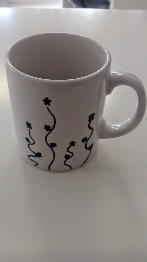 Y así queda nuestro dibujo una vez repasado. A continuación hay que dejarlo secar unas 4 horas y después para que se fije el dibujo meterlo en el horno 30 min a 160 grados. Así puedes asegurarte de que si se moja o se mete en el lavavajillas no se irá el dibujo.