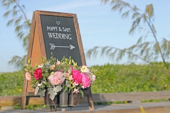 Como véis en este ejemplo de The Wedding Makers, el cartel está colocado a la entrada a la ceremonía.