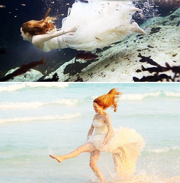 Pues a lo que iba, he estado cotilleando fotos de sesiones de novios en la playa y he visto varias fotos de novias en el agua! no sé hasta que punto me atrevería, si es verdad que son una pasada!! es un Trash The Dress original y pueden salir unas imágenes muy veraniegas y divertidas. Así que hoy os dejo unas cuántas imágenes de novios que sí se han atrevido y el resultado! Y al final os lanzaré una preguntita...
