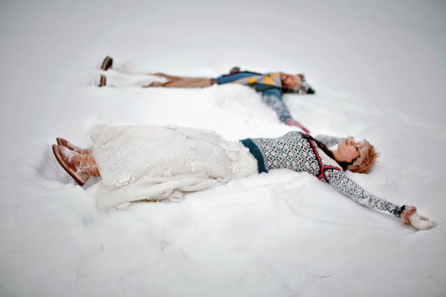 Me requete encanta este postboda, es divertido y diferente a las formalidades a las que estamos acostumbrados. Entre la nieve, con ropa invernal, jerseys, gorros, guantes, y un novio vestido informal.